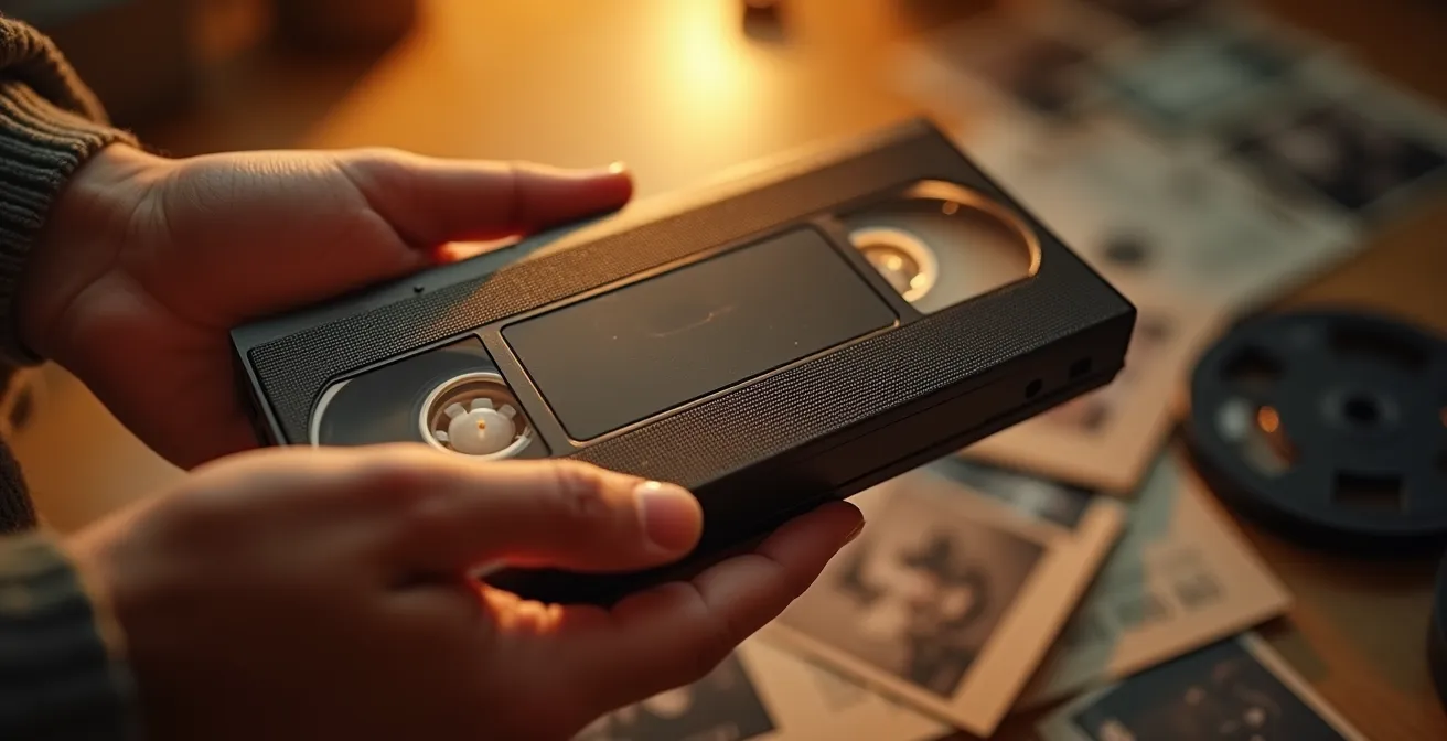 Dans le grenier, au fond d’un carton poussiéreux, elles attendent. Vos cassettes vidéo accumulent les années, mais pas seulement la poussière. Elles contiennent des fragments de vie que personne d’autre ne possède : les gestes de votre grand-mère disparue, la…